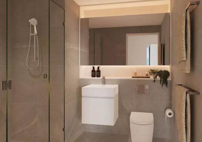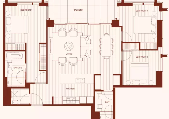 Interiors are refined and timeless, featuring floor-to-ceiling windows, flowing open-plan layouts, and balconies designed to frame iconic outlooks. Kitchens are masterpieces of design and function with Miele appliances, monolithic stone surfaces, and bespoke joinery. Bedrooms are serene sanctuaries, paired with elegant bathrooms that bring spa-like luxury to everyday living.