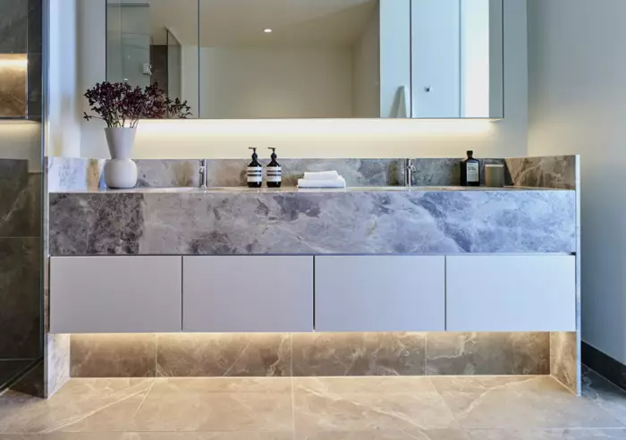 Interiors celebrate Melbourne’s heritage through natural stone, warm timber, and gold-accented finishes. Floor-to-ceiling glazing floods each residence with light, while expansive living and dining areas flow seamlessly to generous bedrooms and tranquil retreats.