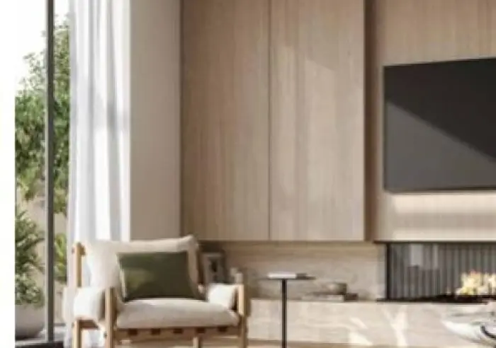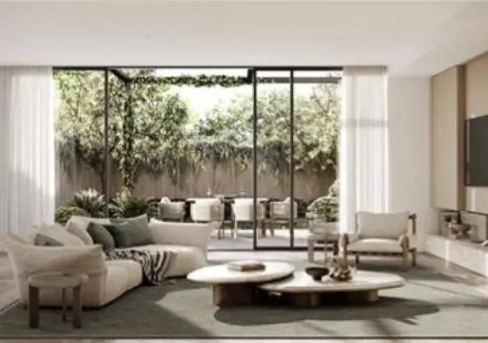 Interiors redefine contemporary luxury. Gourmet kitchens are appointed with natural stone surfaces, premium Gaggenau appliances, and Astra Walker tapware. Living spaces are enriched by European oak flooring, bespoke joinery, and integrated fireplaces, while bathrooms exude quiet sophistication with stone finishes and refined detailing. Private west-facing courtyards extend the living experience outdoors, creating seamless spaces for alfresco entertaining.